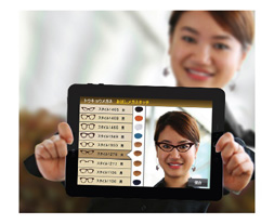 「お試しメガネタッチ」は、株式会社トウキョウメガネの店頭にて、バーチャルフィッティングを行い、接客補助のためのアプリです。消費者はメガネを買う際、そのメガネをかけることでどのように自分の印象が変わるかをとても気にします。そこで、タブレットPCに内蔵されているカメラと、アプリに内蔵したメガネのデータを使い、お客様の顔写真とメガネのデータを合成するアプリを導入しました。メガネを購入し、身に着けた際のイメージを分りやすく画像で伝えすることで、お客様の購買を後押し、購買率、満足率の向上に貢献します。また、こうしたツールを導入することで、個人個人に依存していた接客がフォーマット化され、変わらないサービスをお客様に提供できるようになります。